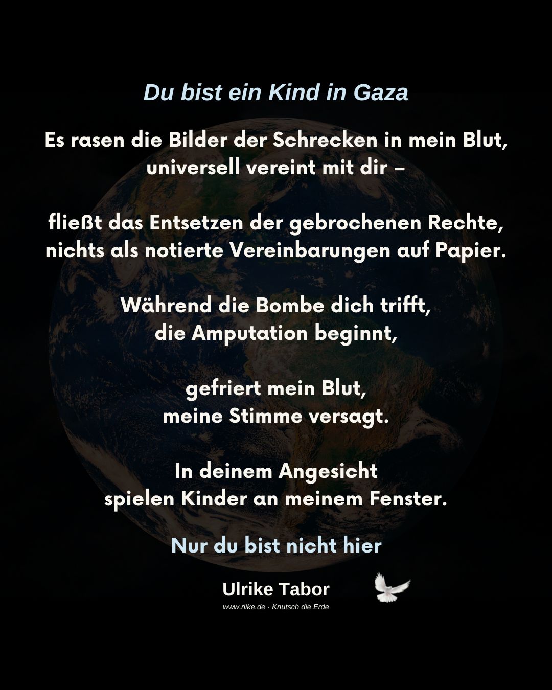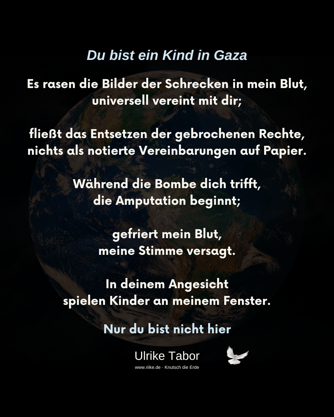 währenddessen das Mitgefühl erkaltet und Kinder im Terror verrecken.